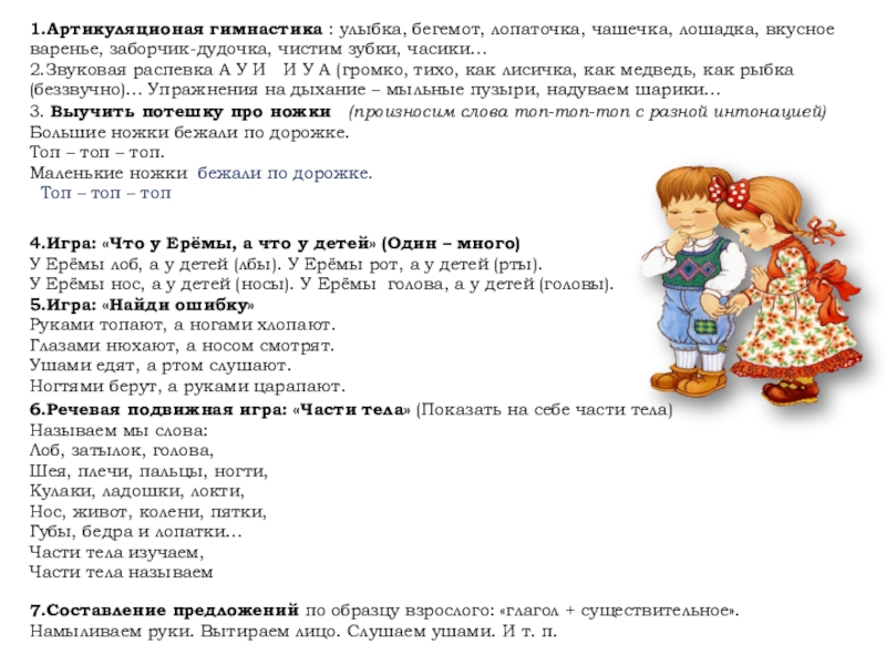 7.Составление предложений по образцу взрослого: «глагол + существительное».