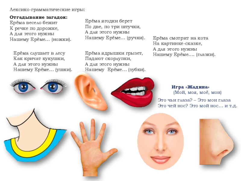 У Ерёмы нос, а у детей (носы). У Ерёмы голова, а у детей (головы).