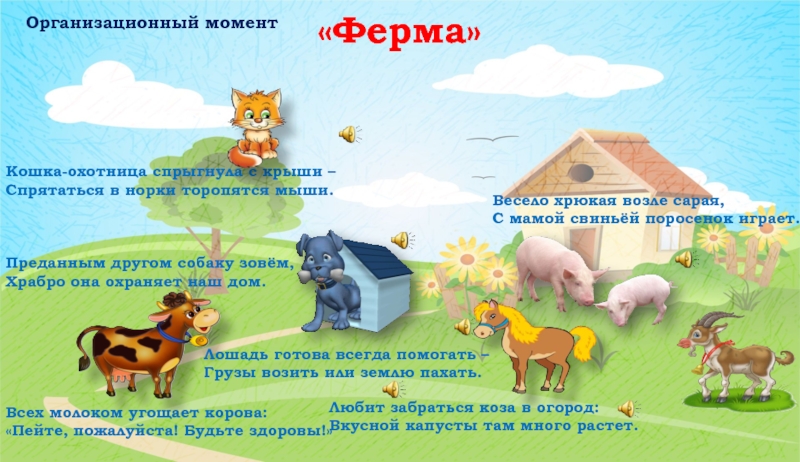 - Давайте отправимся в гости к домашним животным. А поедем мы туда на лошадке…