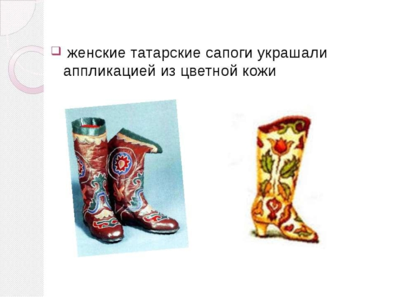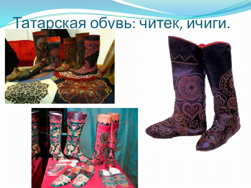 Слайд 13Татарская обувь: читек, ичиги.