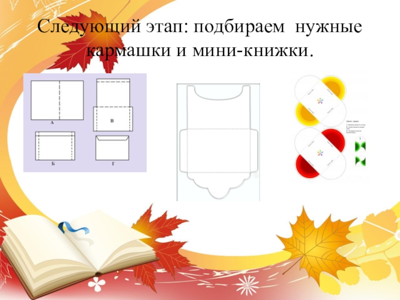 Слайд 12 Следующий этап: подбираем нужные кармашки и мини-книжки.