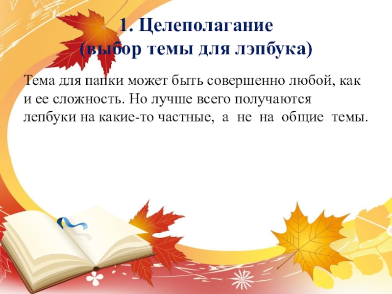 Слайд 5 1. Целеполагание (выбор темы для лэпбука)