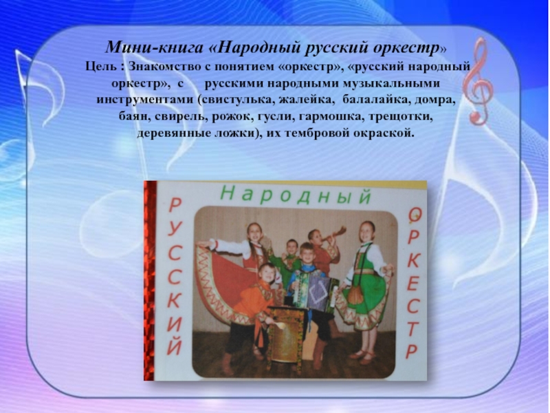 Слайд 13Мини-книга «Народный русский оркестр»
