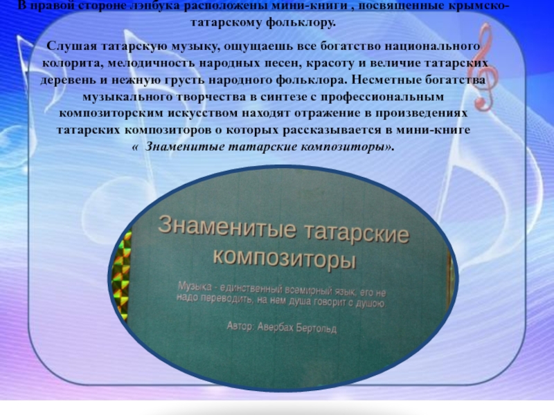 Слайд 15В правой стороне лэпбука расположены мини-книги , посвященные крымско-татарскому фольклору.