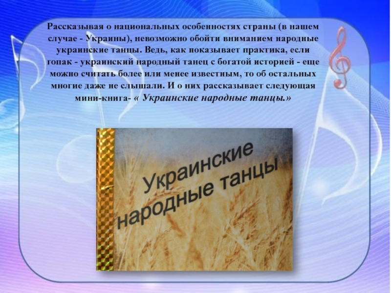 обойти вниманием народные украинские танцы. Ведь, как показывает практика, если гопак - украинский народный танец с богатой историей - еще можно считать более или менее известным, то об остальных многие даже не слышали. И о них рассказывает следующая мини-книга- « Украинские народные танцы.»