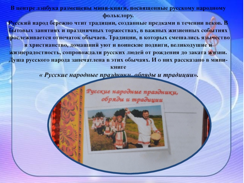 Слайд 10В центре лэпбука размещены мини-книги, посвященные русскому народному фольклору.