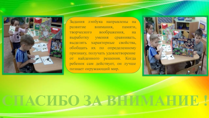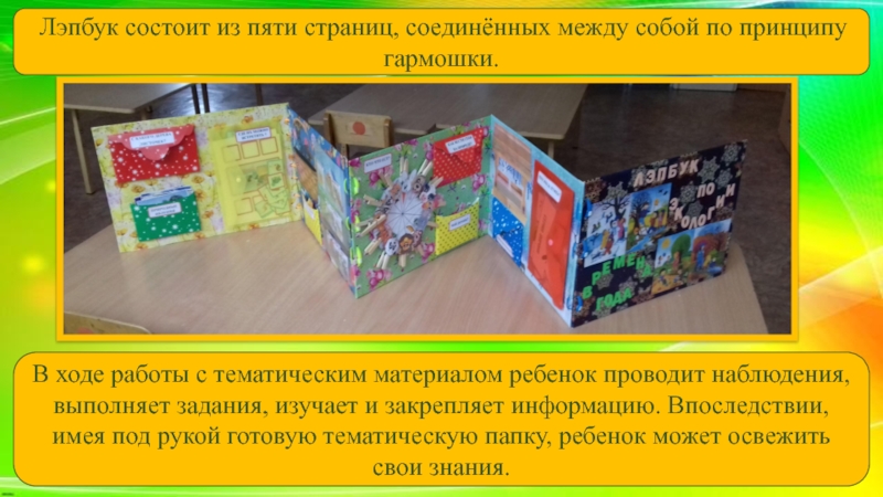 В ходе работы с тематическим материалом ребенок проводит наблюдения, выполняет задания, изучает и закрепляет информацию. Впоследствии, имея под рукой готовую тематическую папку, ребенок может освежить свои знания.