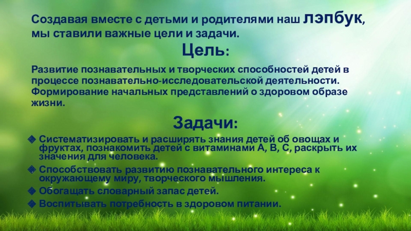 Развитие познавательных и творческих способностей детей в процессе познавательно-исследовательской деятельности. Формирование начальных представлений о здоровом образе жизни.