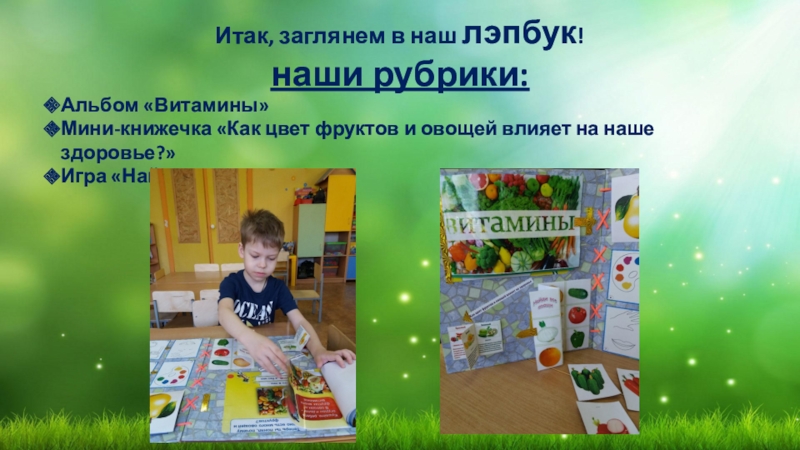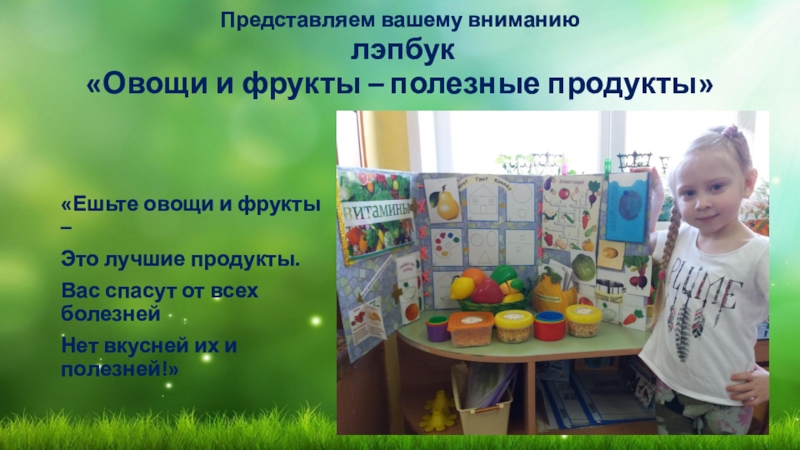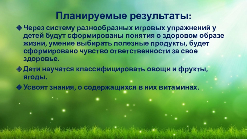 Систематизировать и расширять знания детей об овощах и фруктах, познакомить детей с витаминами А, В, С, раскрыть их значения для человека.