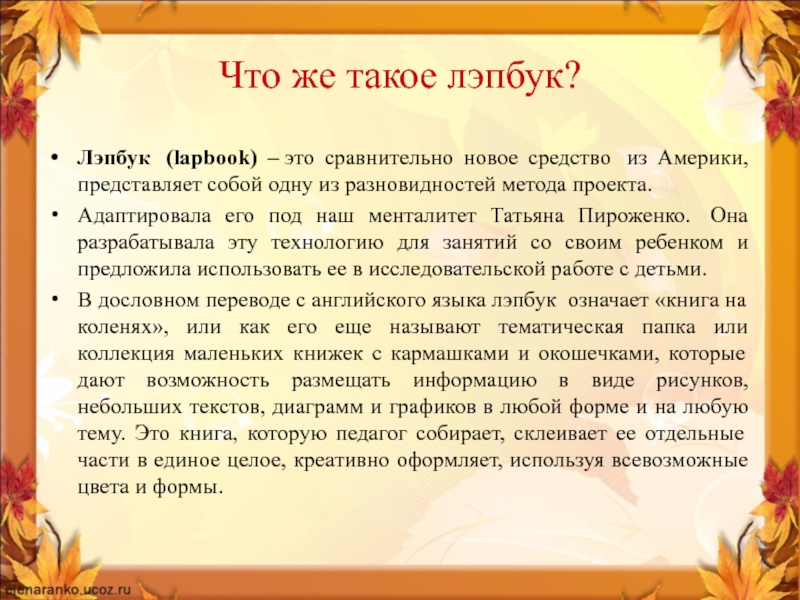 Что же такое лэпбук?Лэпбук  (lapbook) – это сравнительно новое средство  из Америки, представляет собой одну из разновидностей метода