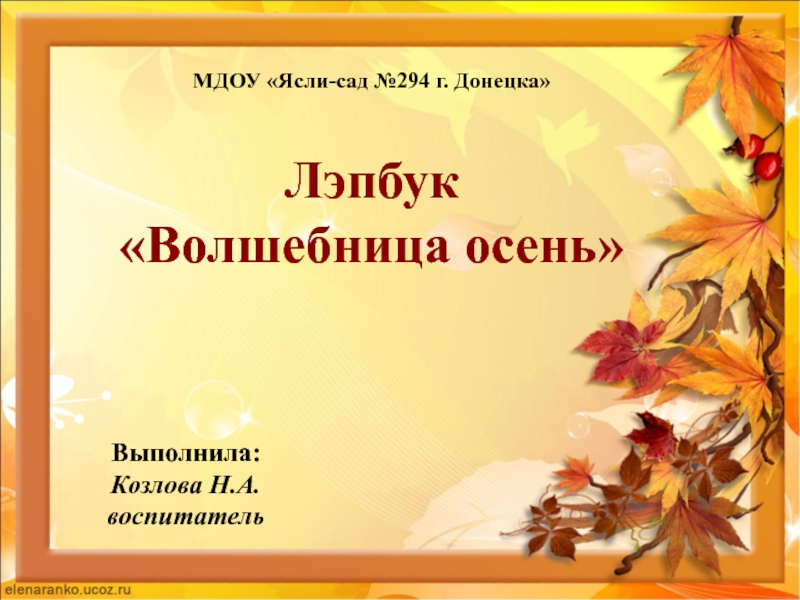 Слайд 1МДОУ «Ясли-сад №294 г. Донецка» Лэпбук «Волшебница осень»