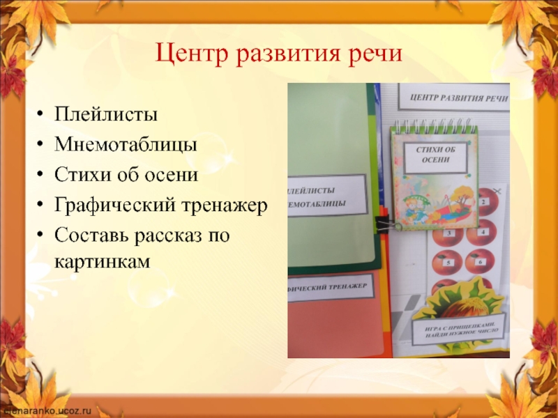 Центр развития речиПлейлисты МнемотаблицыСтихи об осениГрафический тренажерСоставь рассказ по картинкам