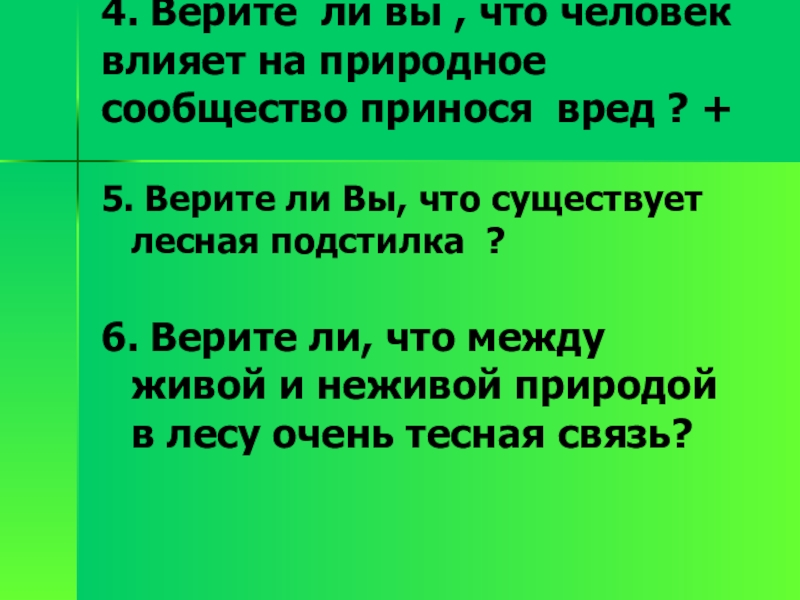 6. Верите ли, что между живой и неживой природой в лесу очень тесная связь?