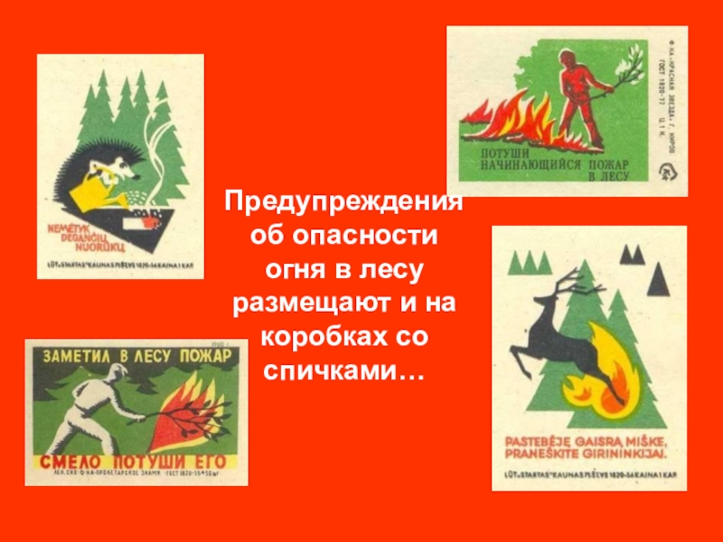 Предупреждения об опасности огня в лесу размещают и на коробках со