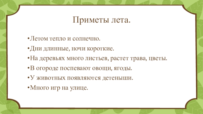 Летом тепло и солнечно.