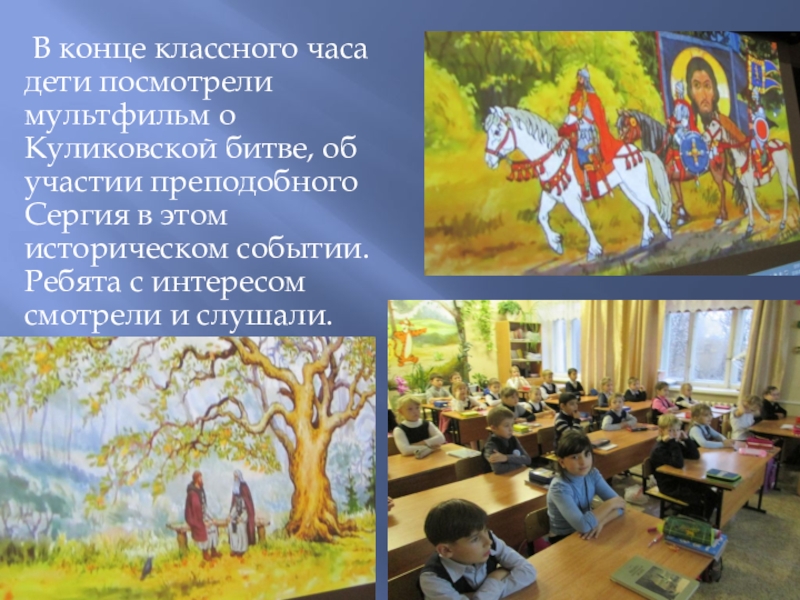 В конце классного часа дети посмотрели мультфильм о Куликовской битве,