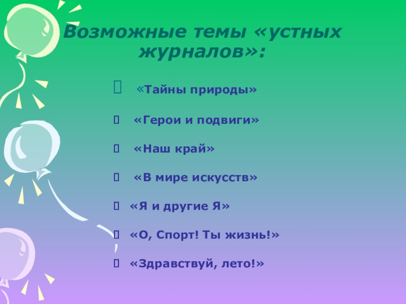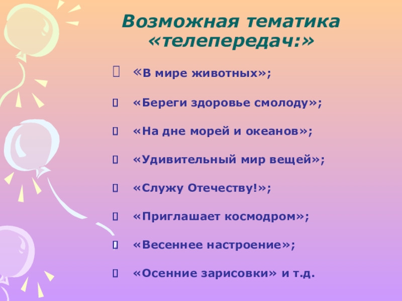 Это сайт презентаций, где можно хранить и обмениваться своими презентациями, докладами, проектами, шаблонами в формате PowerPoint с другими пользователями. Мы помогаем школьникам, студентам, учителям, преподавателям хранить и обмениваться учебными материалами.