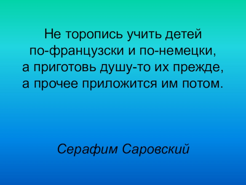Слайд 11 Не торопись учить детей по-французски и по-немецки, а приготовь душу-то их
