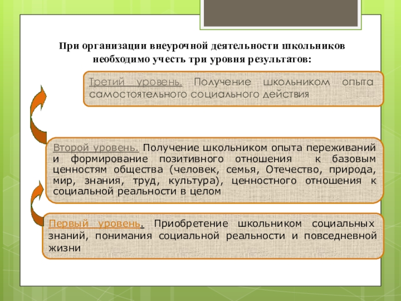 Первый уровень. Приобретение школьником социальных знаний, понимания социальной реальности и повседневной жизни