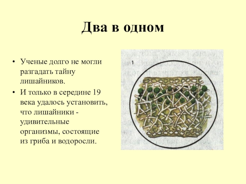 в середине 19 века удалось установить, что лишайники - удивительные организмы, состоящие из гриба и водоросли.