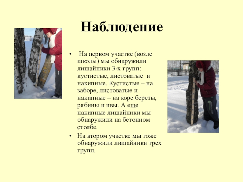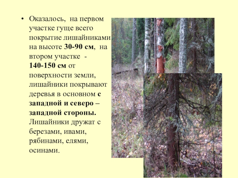 Слайд 18Оказалось, на первом участке гуще всего покрытие лишайниками на высоте 30-90