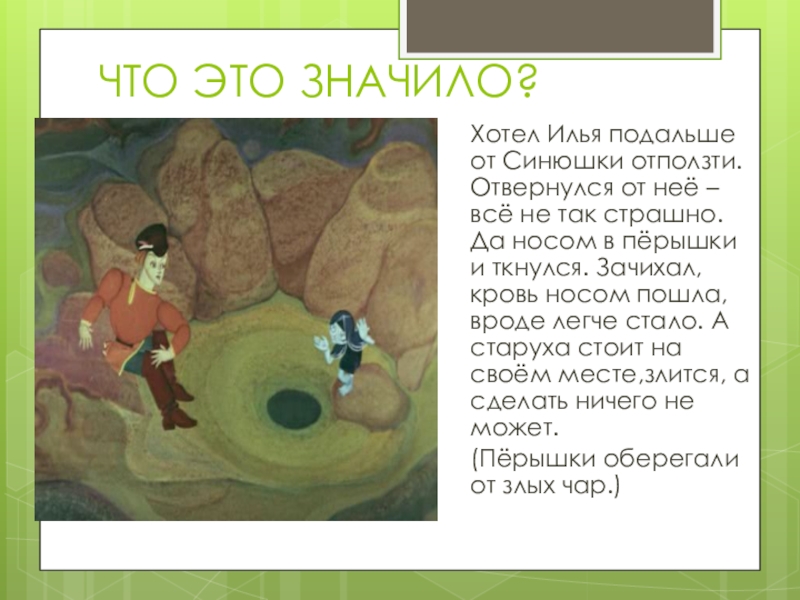 – всё не так страшно. Да носом в пёрышки и ткнулся. Зачихал, кровь носом пошла, вроде легче стало. А старуха стоит на своём месте,злится, а сделать ничего не может.