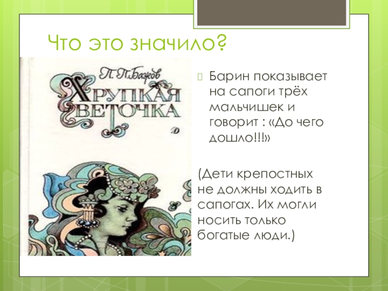 (Дети крепостных не должны ходить в сапогах. Их могли носить только богатые люди.)