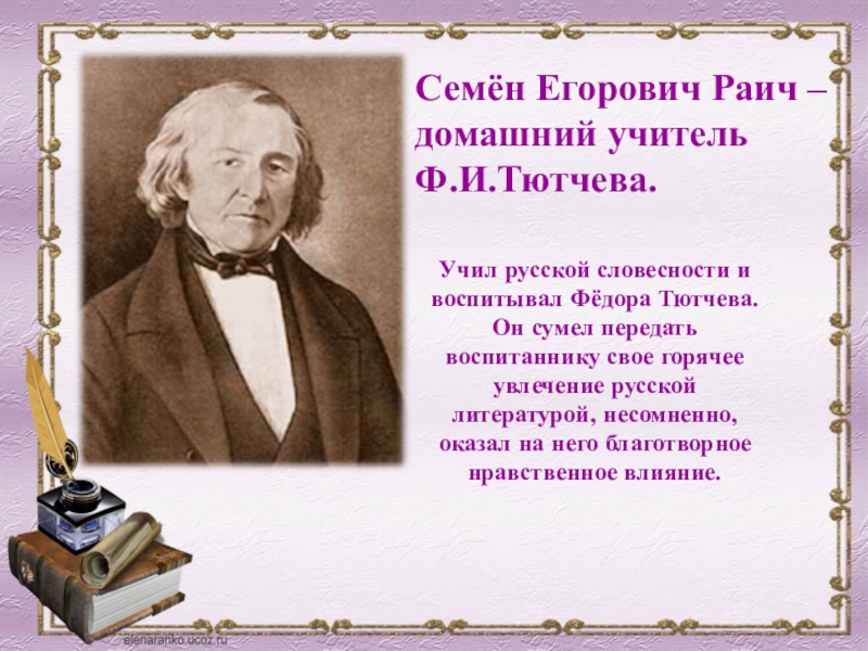 Тютчева. Он сумел передать воспитаннику свое горячее увлечение русской литературой, несомненно, оказал на него благотворное нравственное влияние.