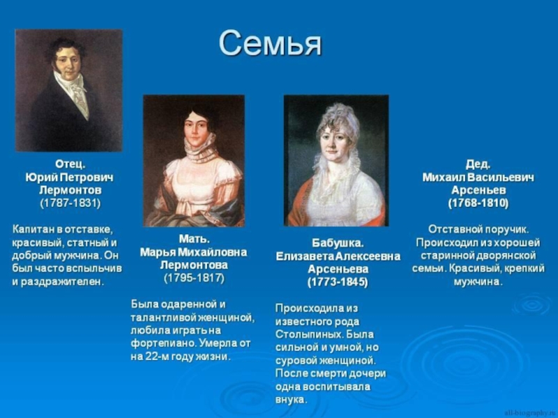 Слайд 1Михаил Юрьевич Лермонтов (1814 – 1841)