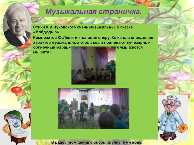 Стихи К.И.Чуковского очень музыкальны. К сказке «Мойдодыр»