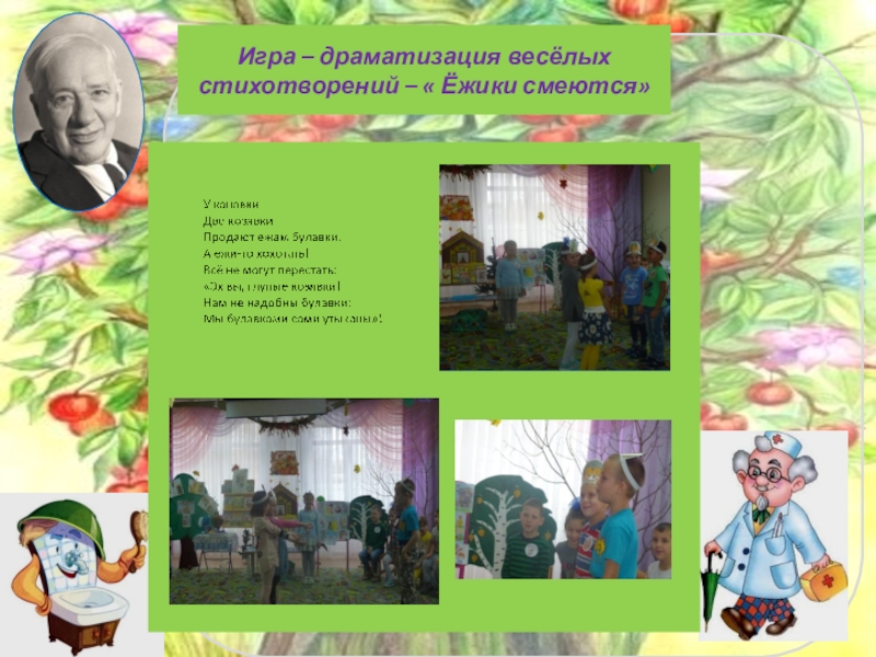 Слайд 10Игра – драматизация весёлых стихотворений – « Ёжики смеются»