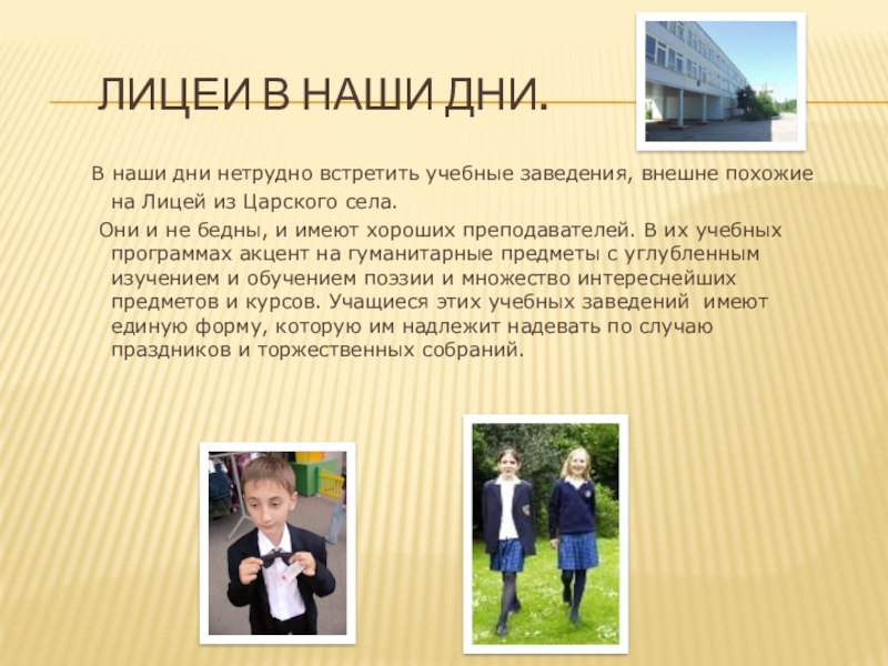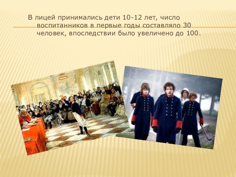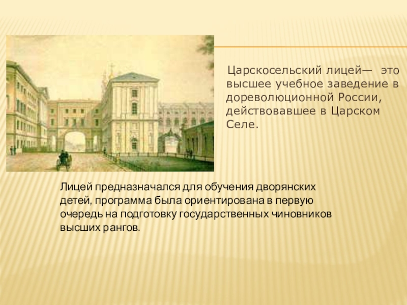 Лицей предназначался для обучения дворянских детей, программа была ориентирована в первую очередь на подготовку государственных чиновников высших рангов.