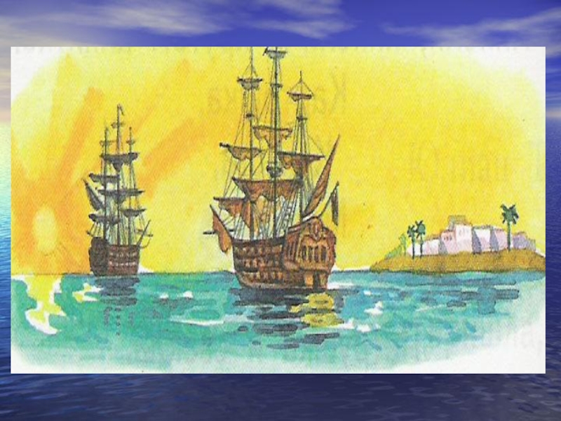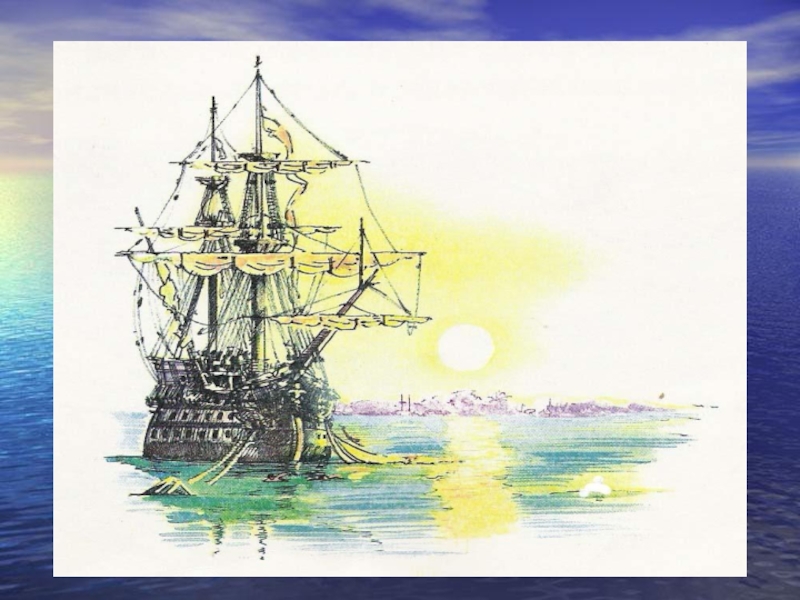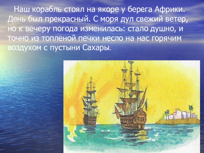 Слайд 27 Наш корабль стоял на якоре у берега Африки. День