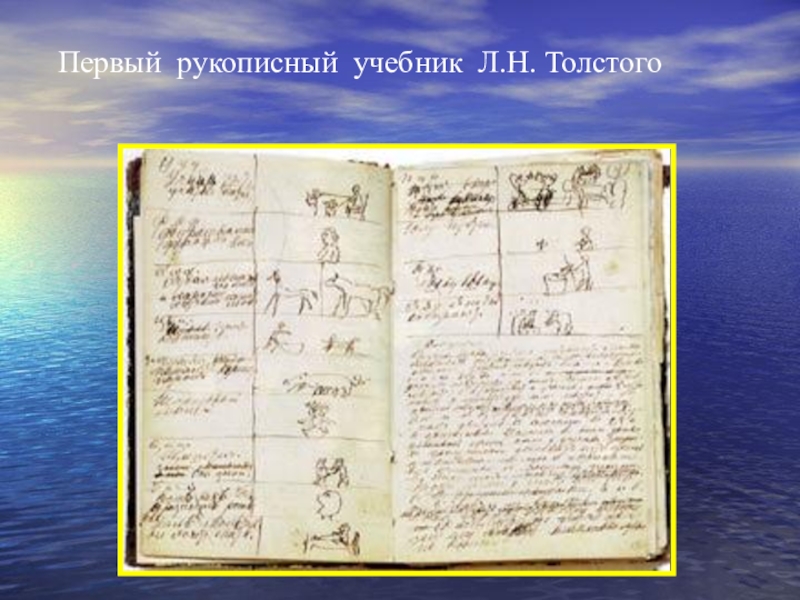 Слайд 6 Первый рукописный учебник Л.Н. Толстого
