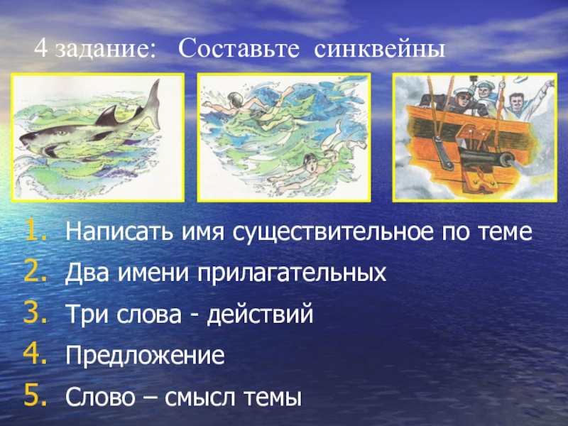 Слайд 194 задание: Составьте синквейны