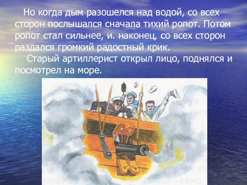Слайд 31 Но когда дым разошелся над водой, со всех сторон