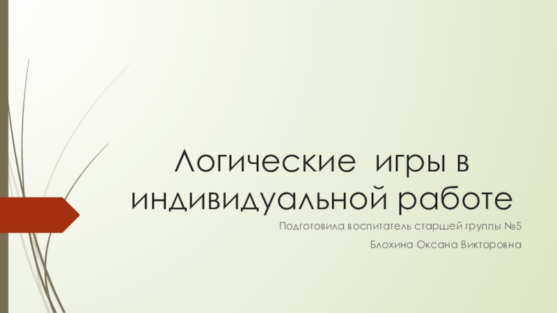 Логические игры в индивидуальной работеПодготовила воспитатель старшей группы №5Блохина Оксана Викторовна
