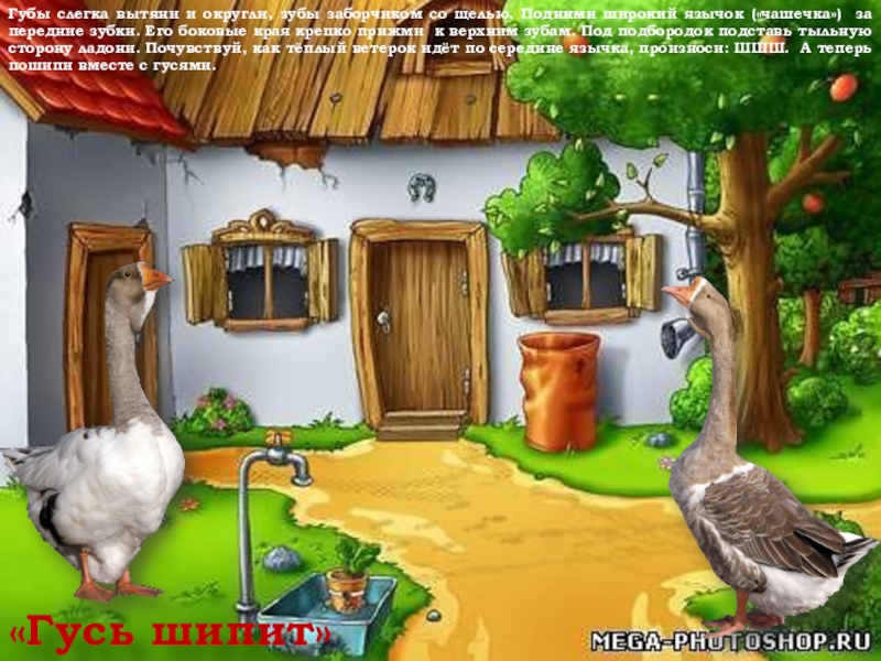 «Забей мяч в ворота». Выработка воздушной струи, интенсивного прерывистого выдоха с произнесением фууууу. направленной по средней линии языка