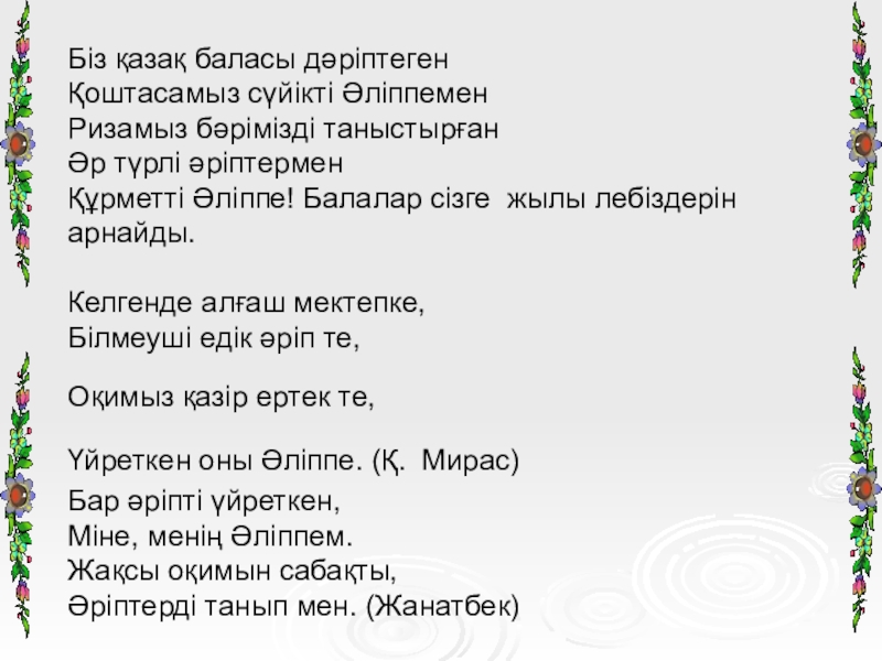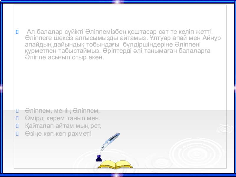 Құрметті Әліппе! Балалар сізге жылы лебіздерін арнайды.