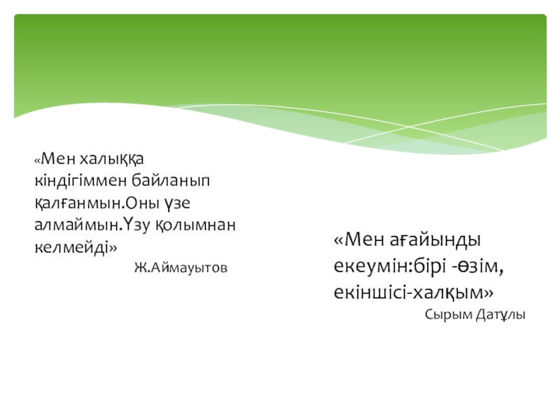 «Мен ағайынды екеумін:бірі -өзім, екіншісі-халқым»