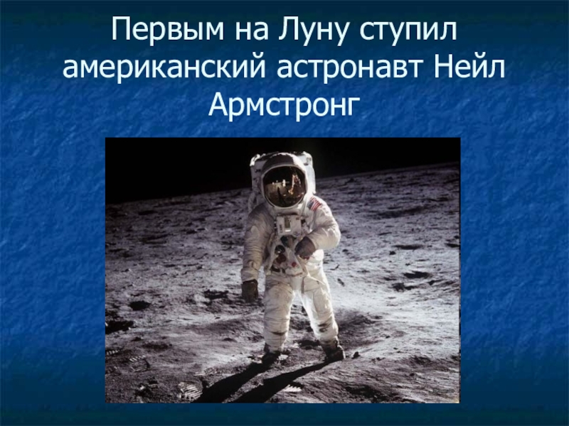 Слайд 17Первым на Луну ступил американский астронавт Нейл Армстронг