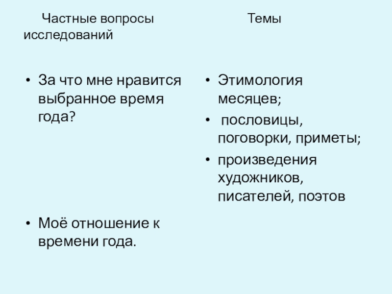 Моё отношение к времени года.