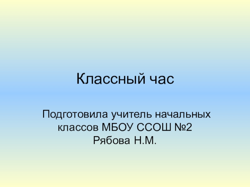 Классный часПодготовила учитель начальных классов МБОУ ССОШ №2 Рябова Н.М.