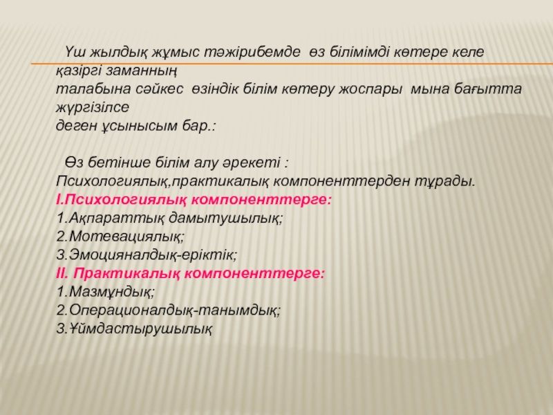 Оқушылардың психологиялық ерекшелігін,ақыл-ойының дамуы және өзін–өзі жетілдіру.