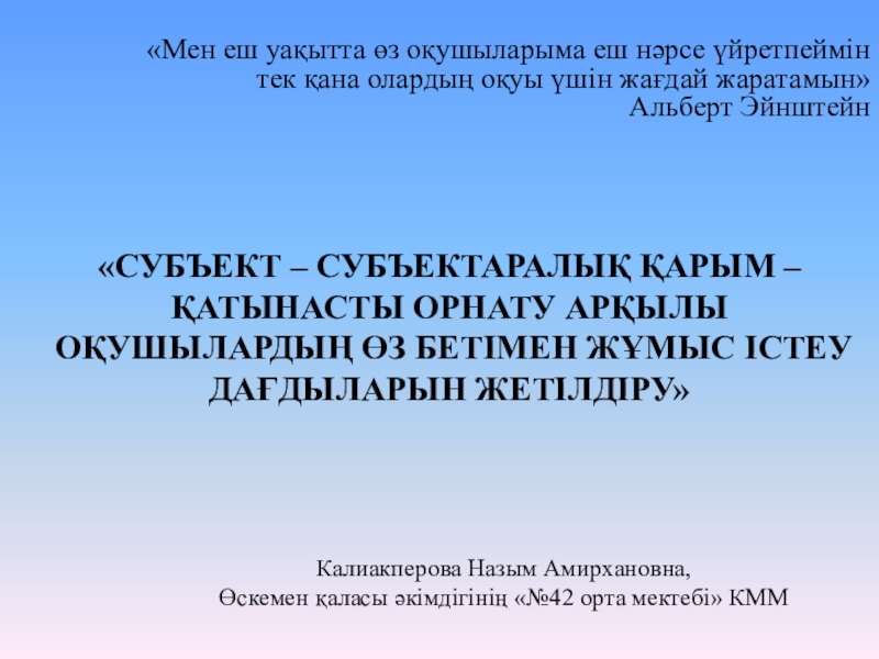 «Субъект – субъектаралық қарым – қатынасты орнату арқылы оқушылардың өз бетімен жұмыс істеу дағдыларын жетілдіру».
