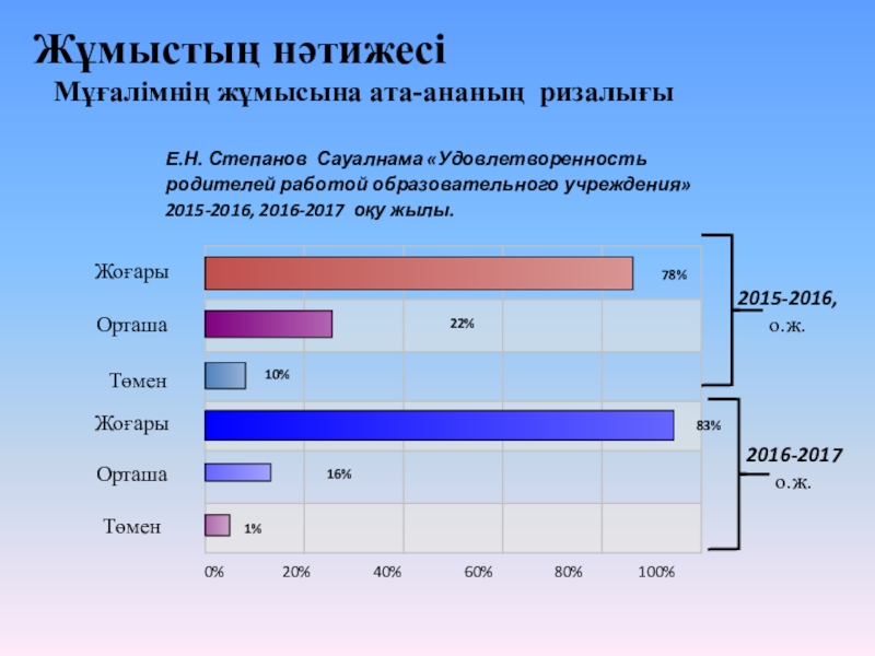 Е.Н. Степанов Сауалнама «Удовлетворенность родителей работой образовательного учреждения» 2015-2016, 2016-2017 оқу жылы.