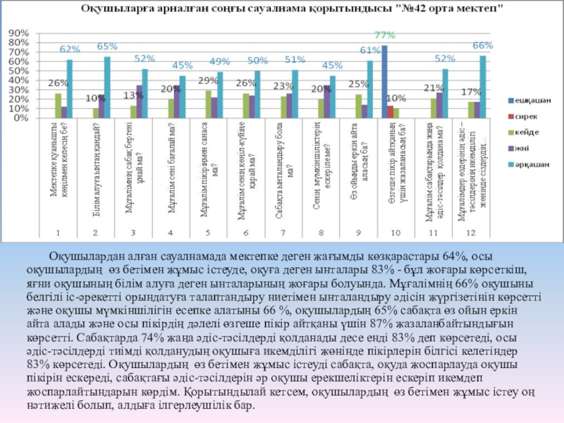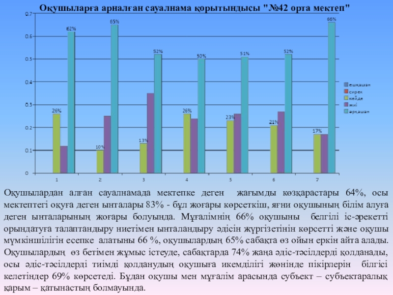 Оқушыларға арналған сауалнама қорытындысы "№42 орта мектеп"