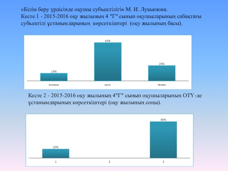 Кесте 2 - 2015-2016 оқу жылының 4"Г" сынып оқушыларының ОТҮ-де ұстанымдарының көрсеткіштері (оқу жылының соңы).
