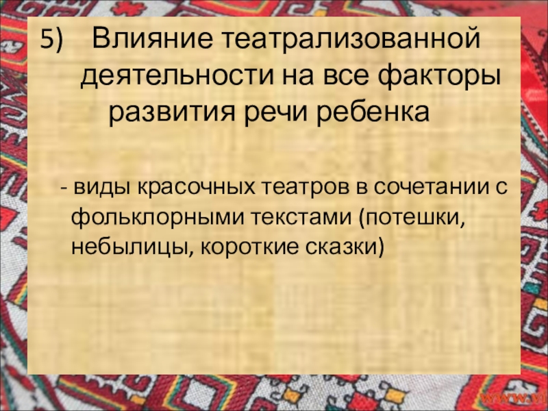 Слайд 9 5) Влияние театрализованной деятельности