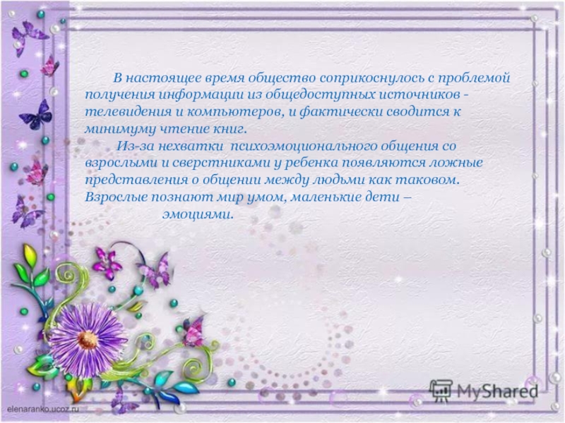 источников - телевидения и компьютеров, и фактически сводится к минимуму чтение книг.